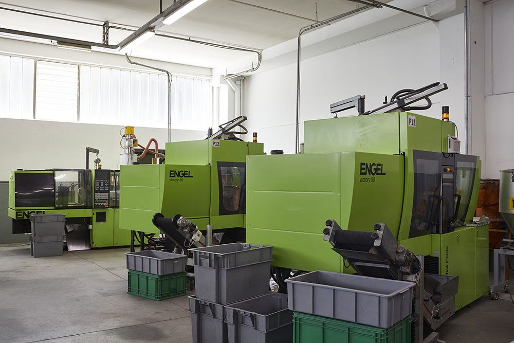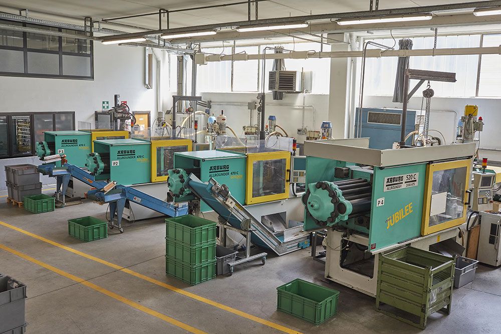 Il nostro parco macchine è composto da presse idrauliche ad iniezione, ARBURG ed ENGEL con capacità da 45 a 200 T. , monitorate da un sistema di gestione 4.0 ed equipaggiate con dei manipolatori robotizzati Wittmann, nastri convogliatori, granulatori ed essiccatori e deumidificatori a bordo macchina.